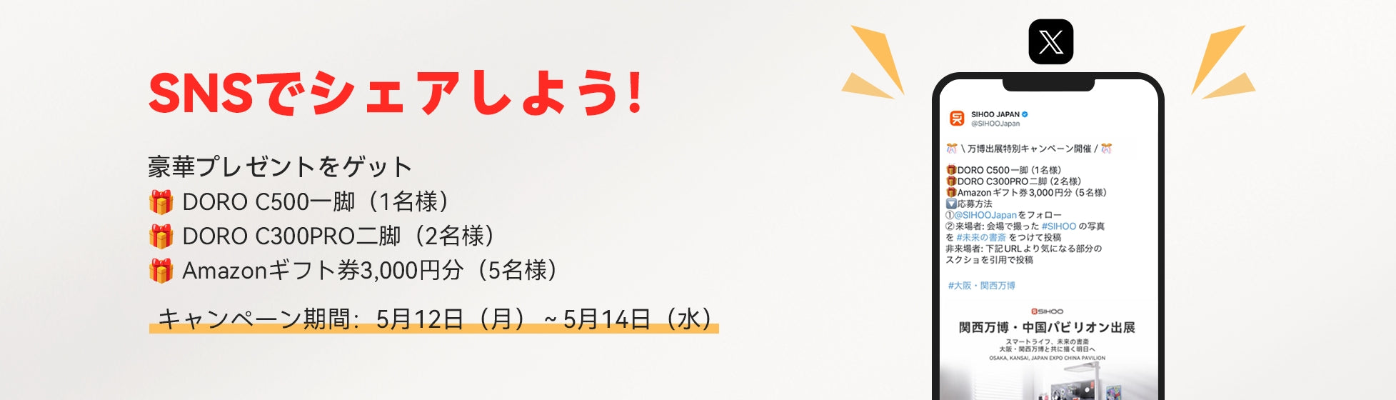 今すぐシェアして豪華プレゼントをゲットしよう!