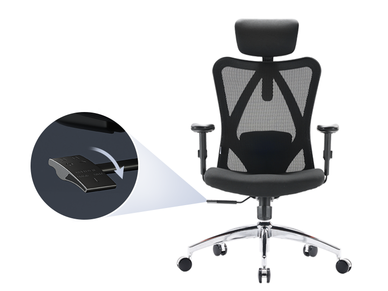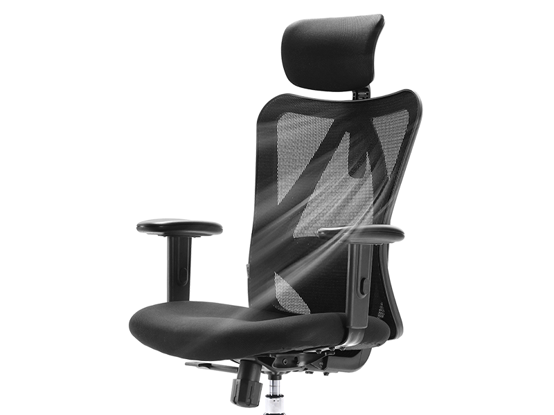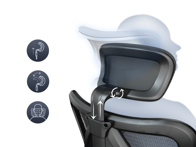 SIHOO M18 オフィスチェアは2Dヘッドレストを採用して9cm上下昇降可能で45°角度調整でき、自分に適する高さや角度を調整して完全に頭部や首を支えることができます。